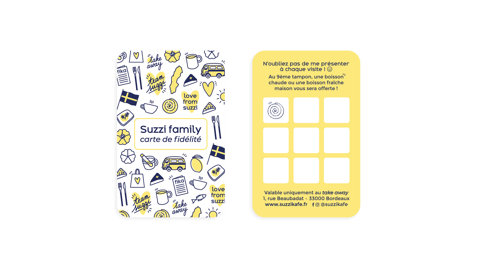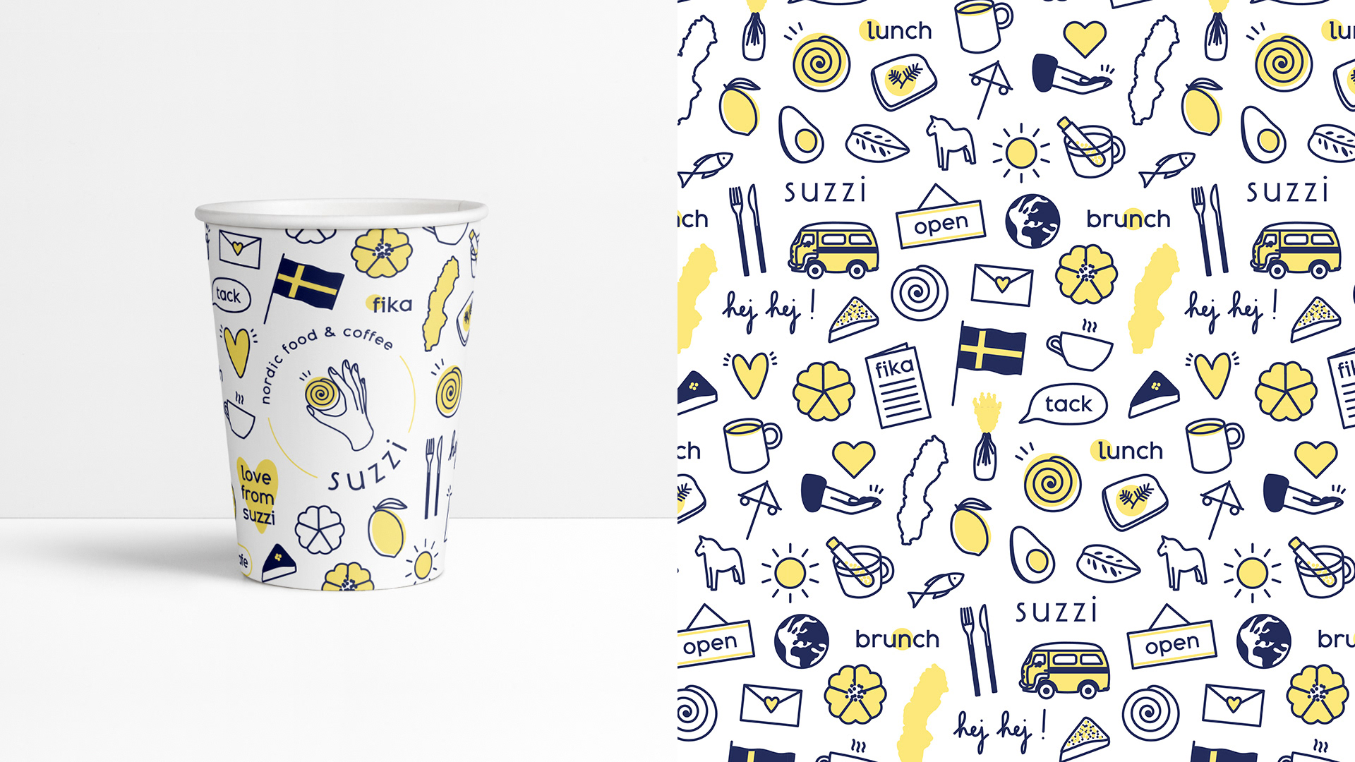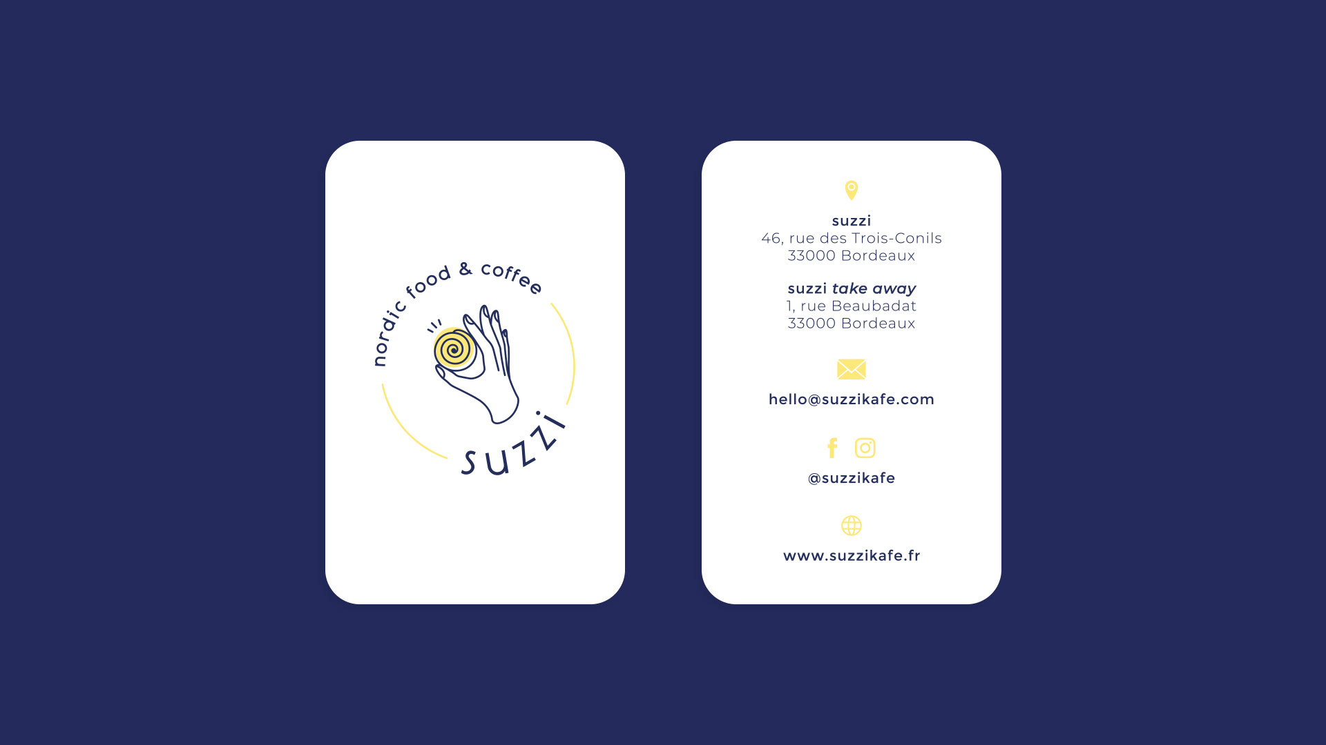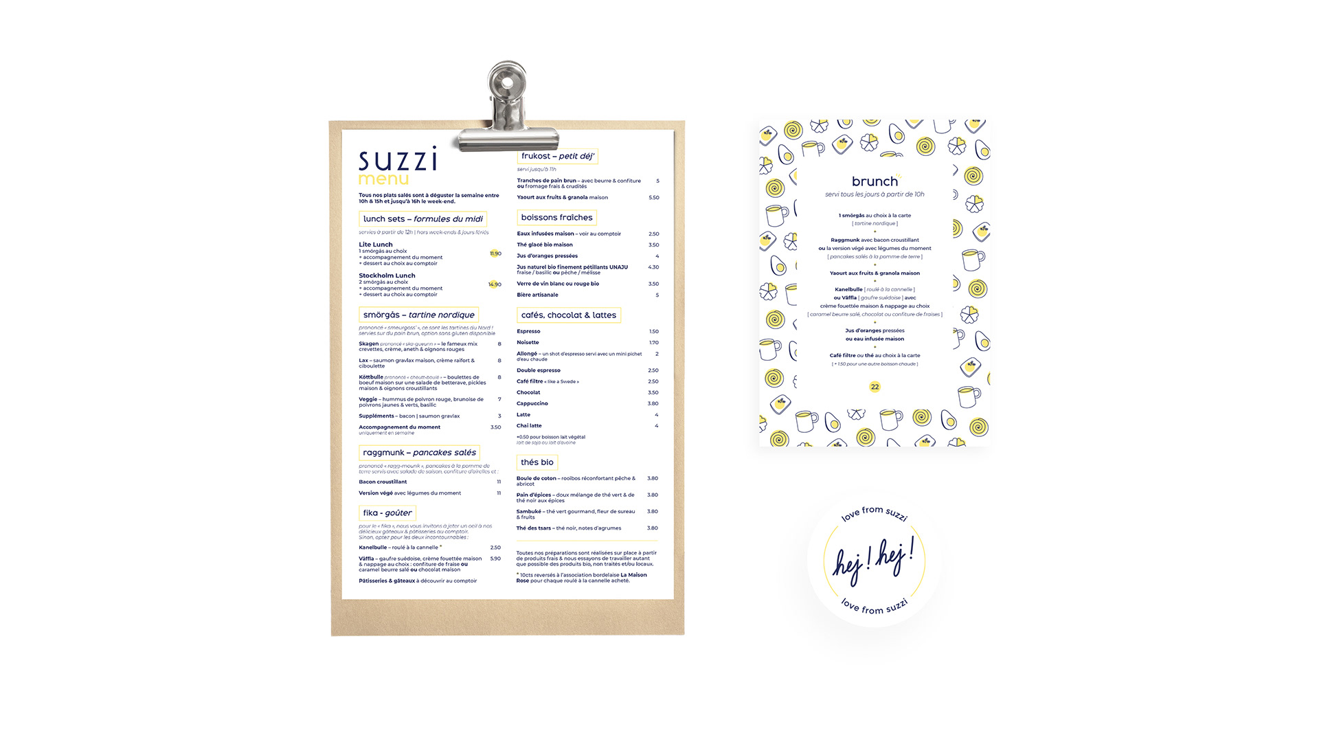 Création de l'identité visuelle ainsi que des supports de communication print et digitaux pour Suzzi, un brunch et café suédois à Bordeaux.